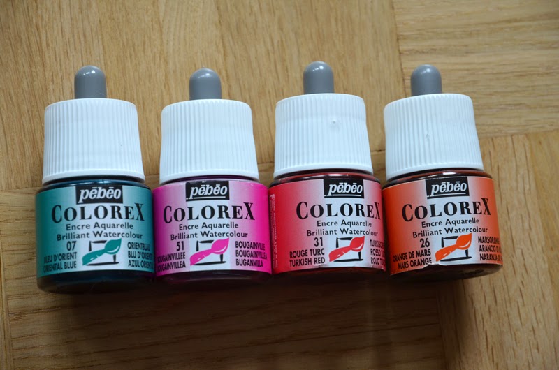 Wo hat du den die Tuschen gekauft? ich glaub, ich muss mir auch noch ein paar Farben zusätzlich besorgen.